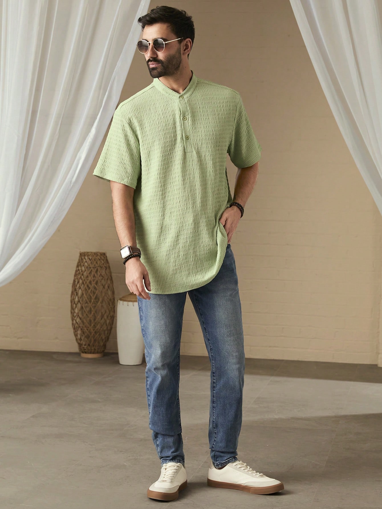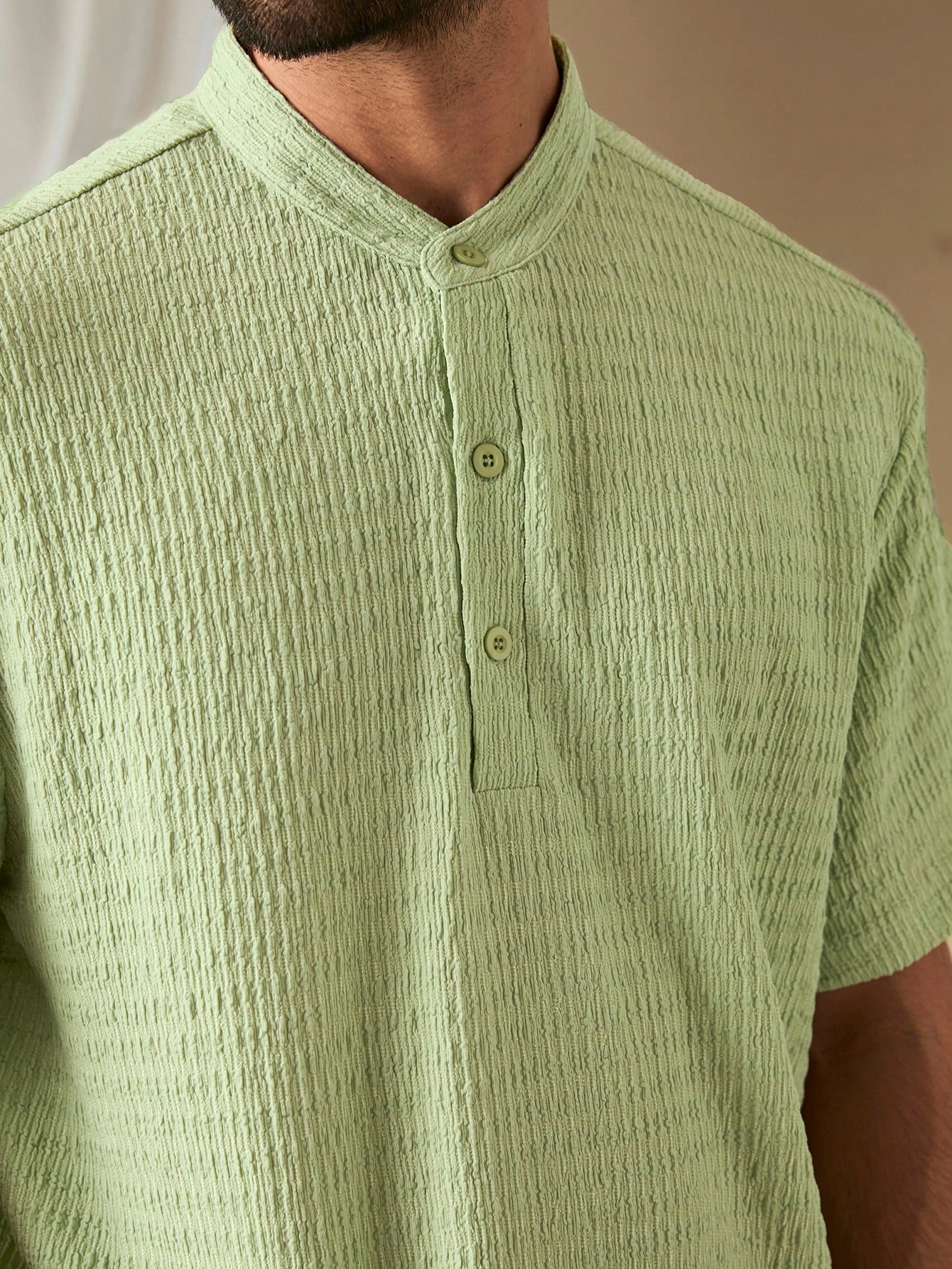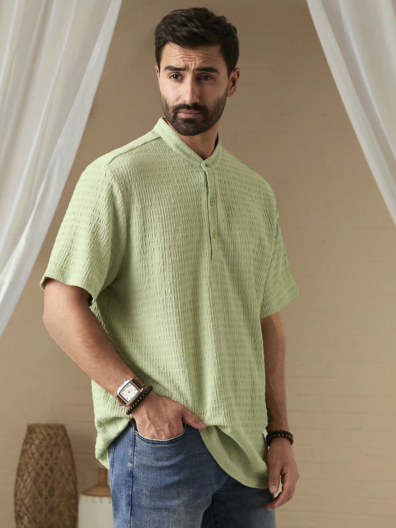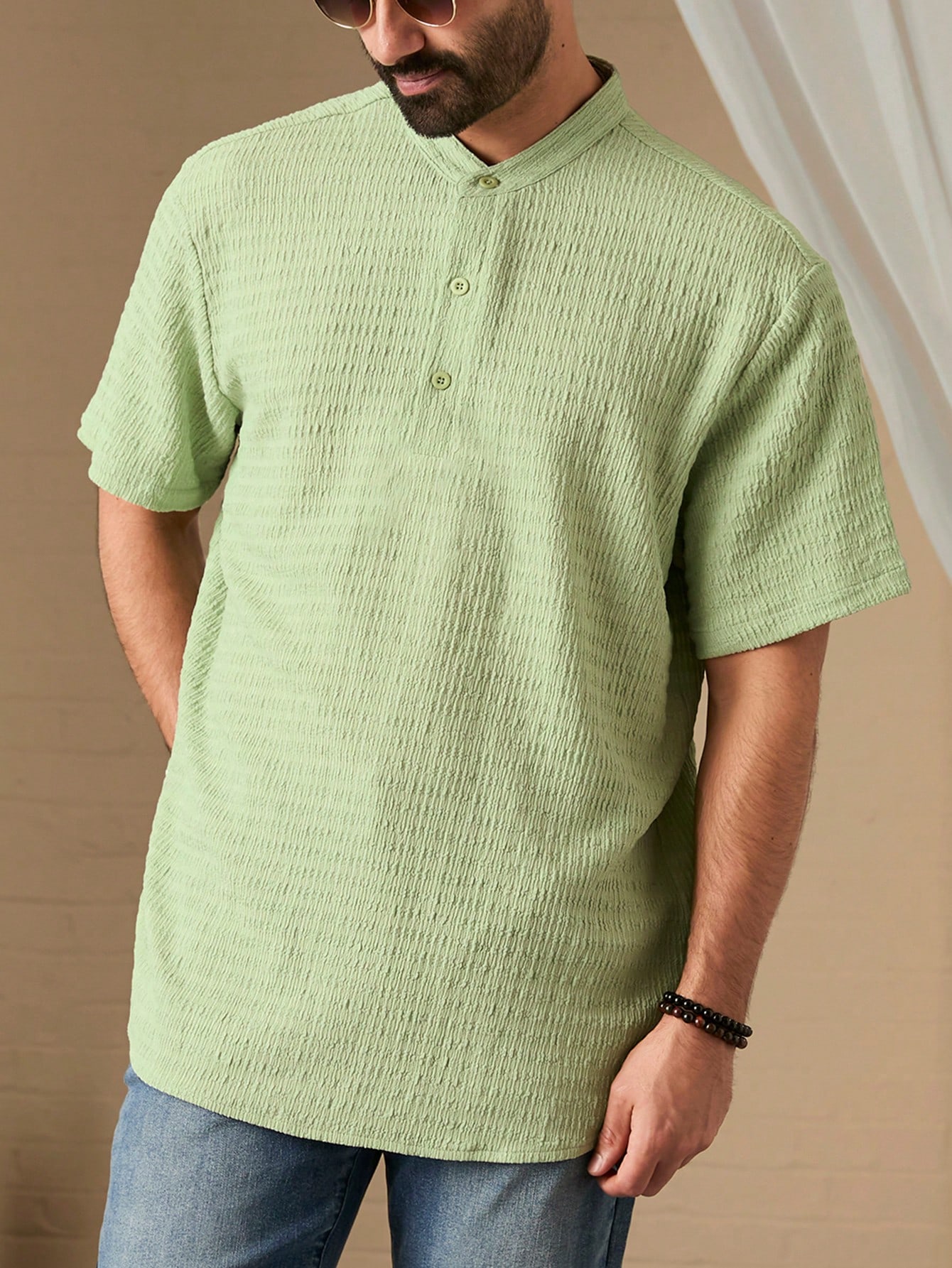 Manfinity KASUA Men Solid Color Single-Breasted Short Sleeve Shirt, SpringSummer