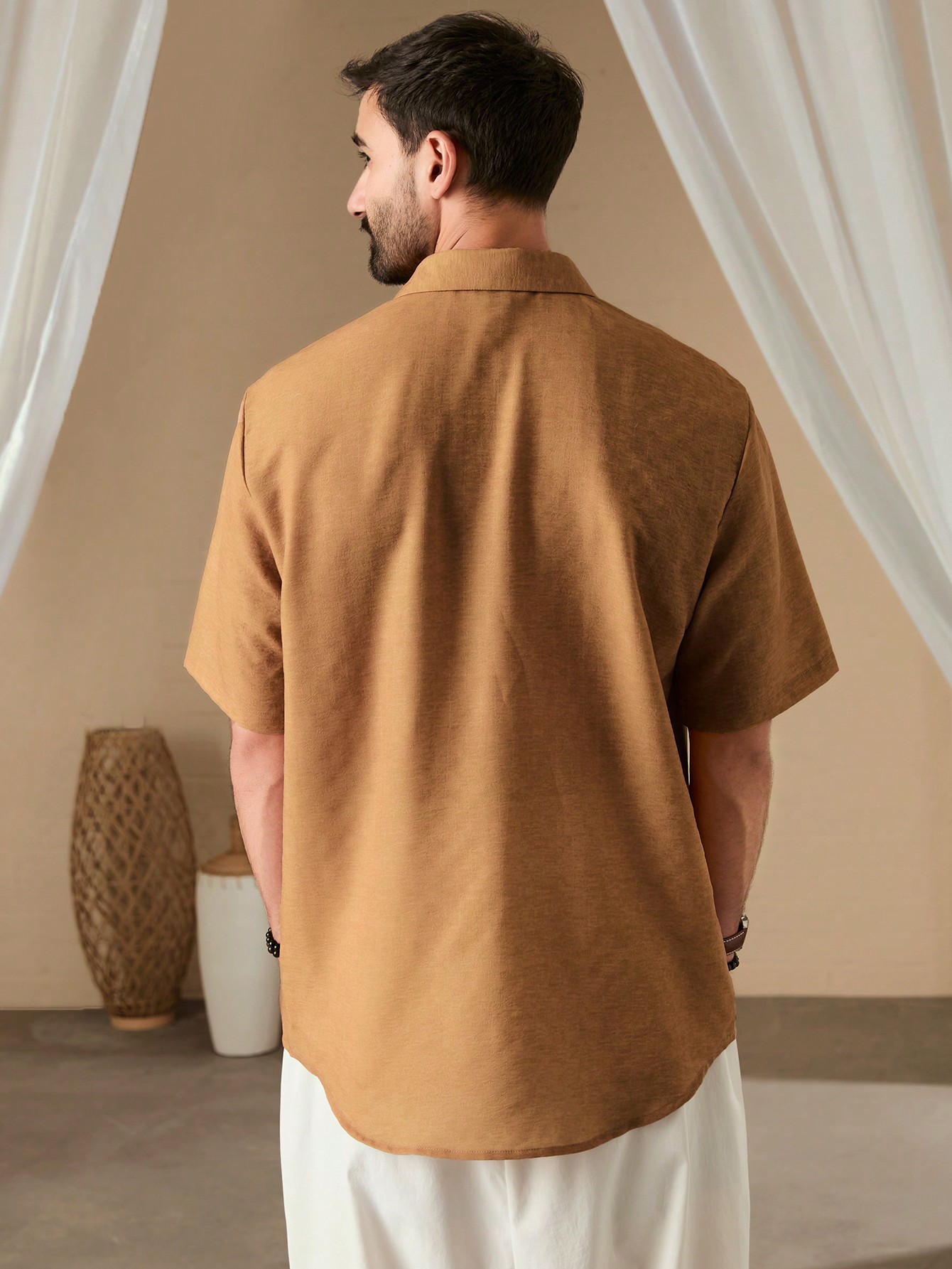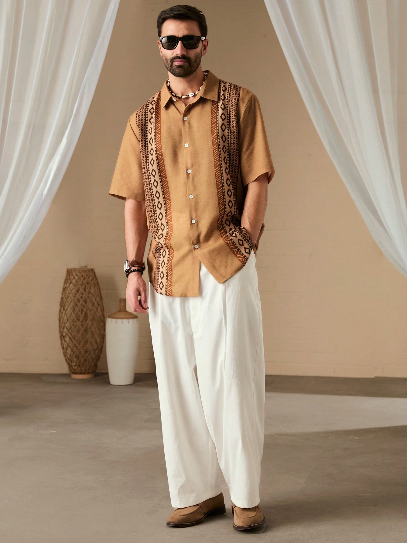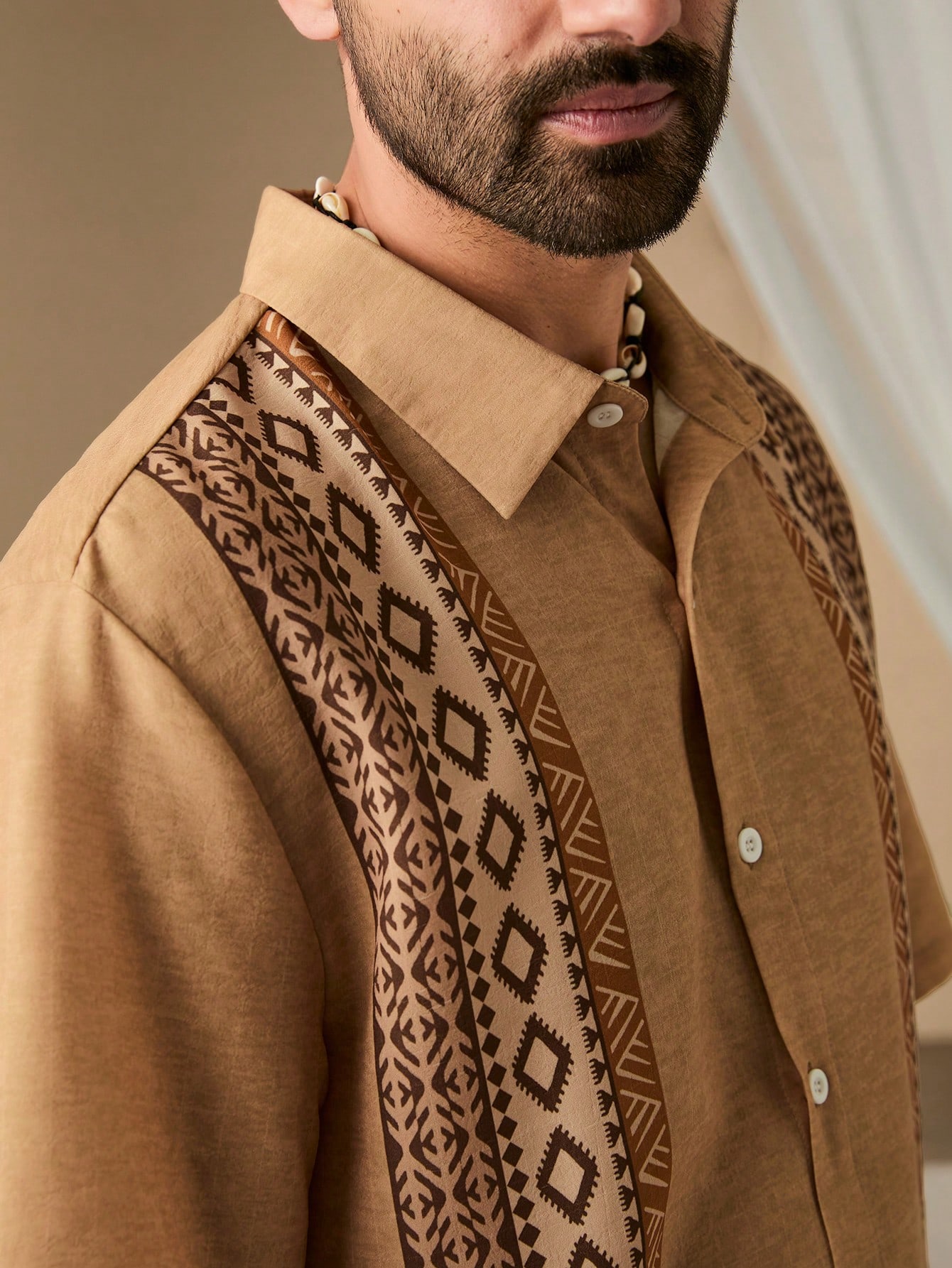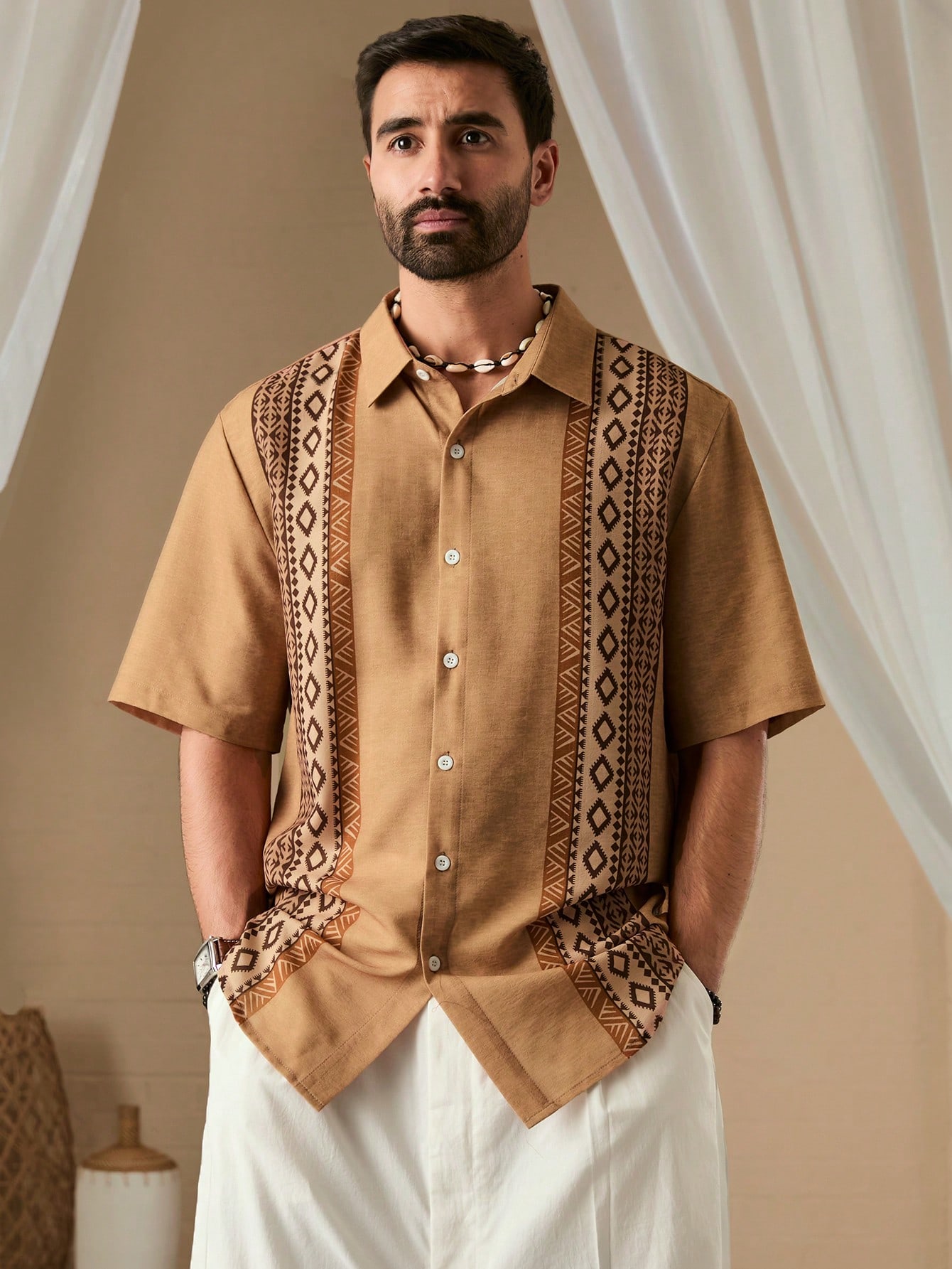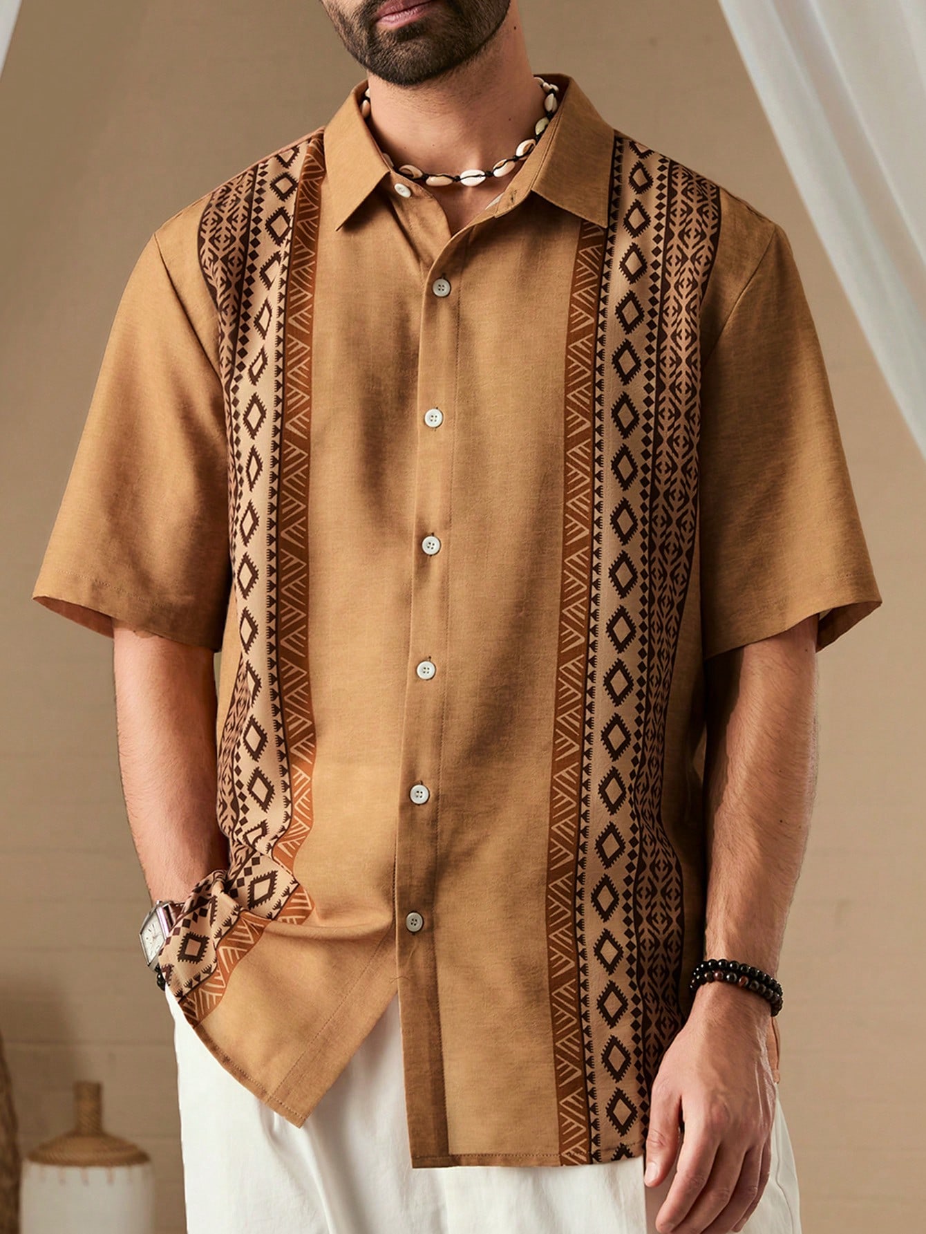 Manfinity KASUA Men Summer Holiday Geometric Printed Short Sleeve Casual Loose Shirt Button Up Collar Graphic Color Block Vacation Shirt