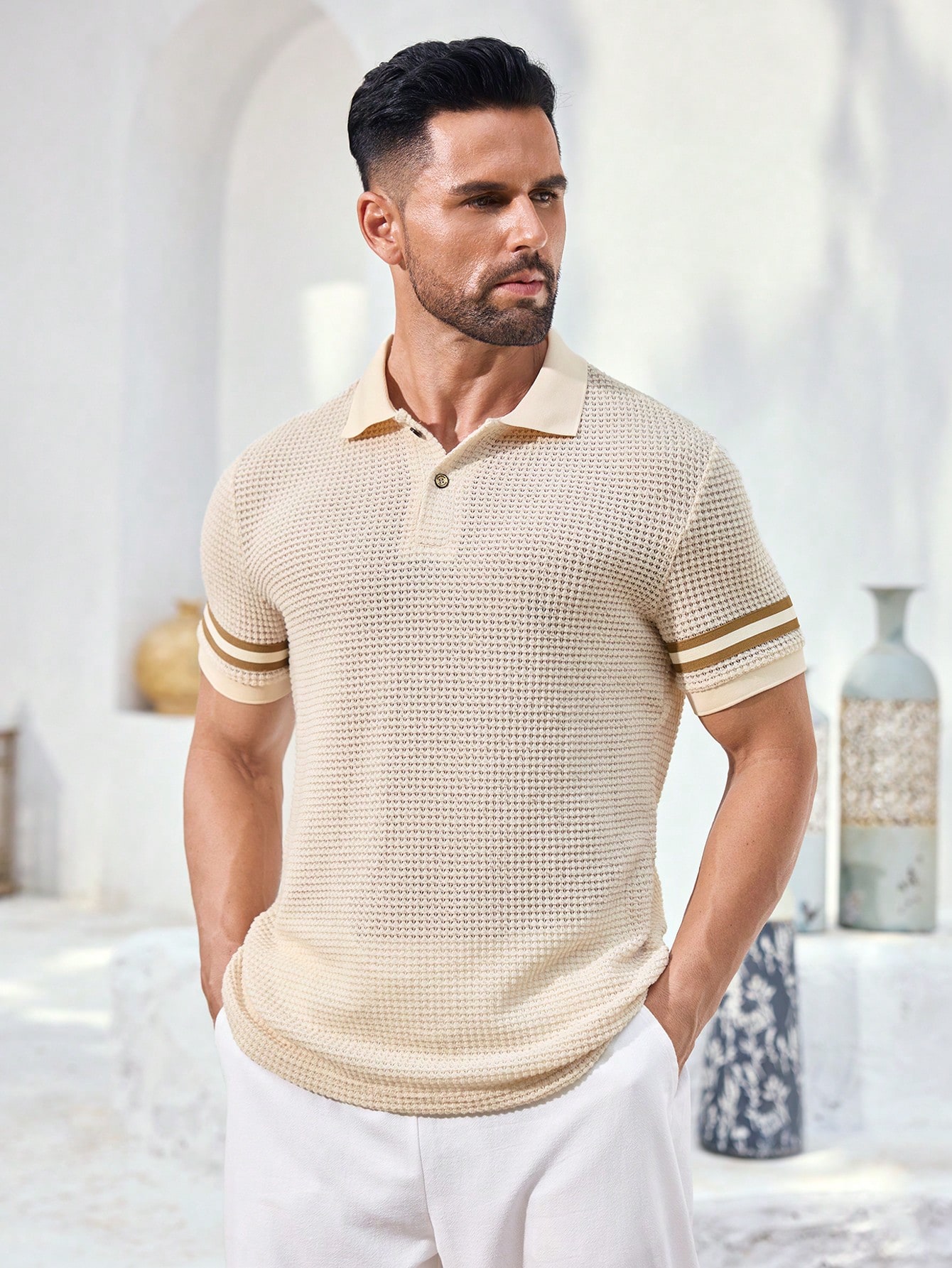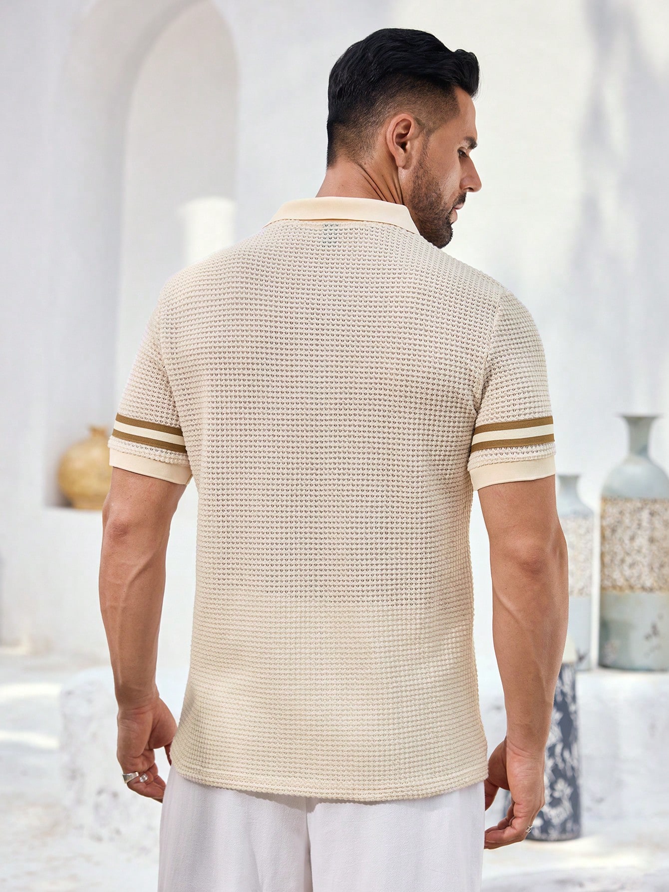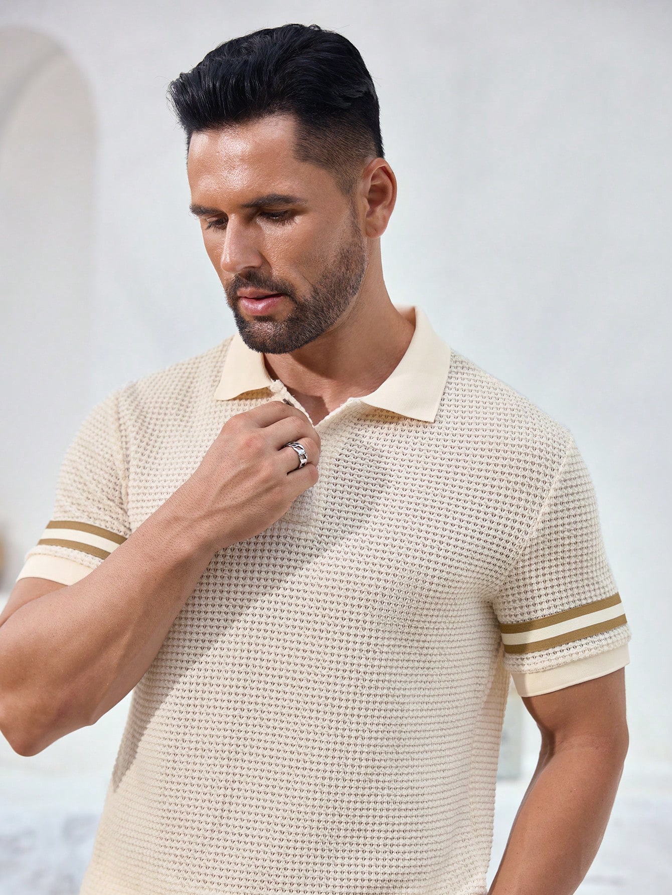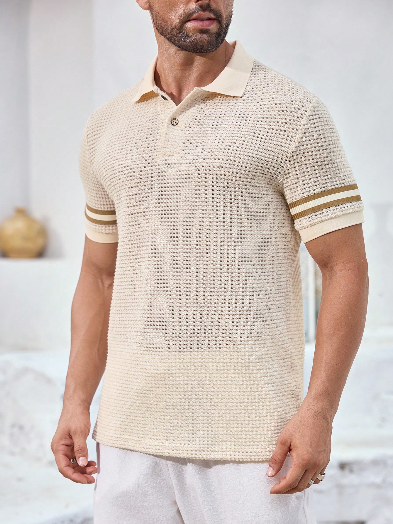 Manfinity KASUA Men??s Knitted Polo Shirt With Striped Cuffs, Soft And Breathable With Button Closure