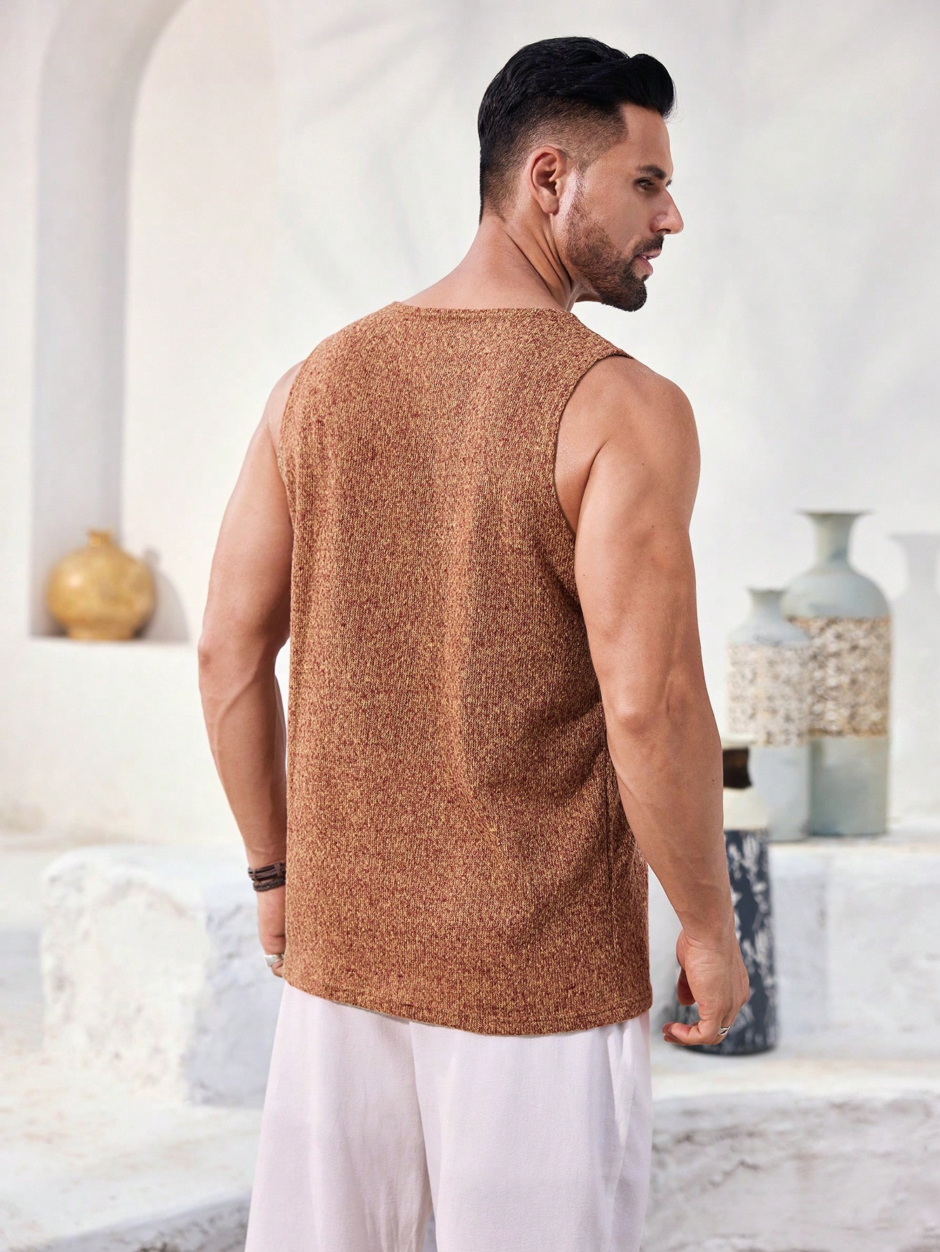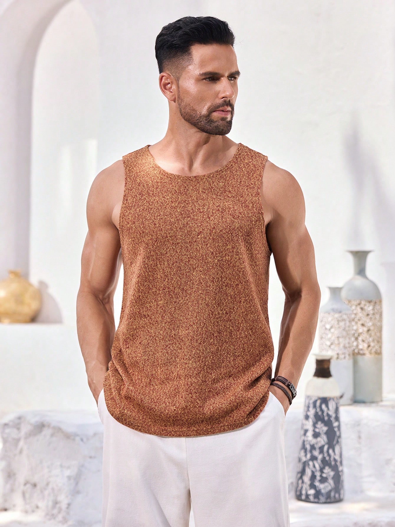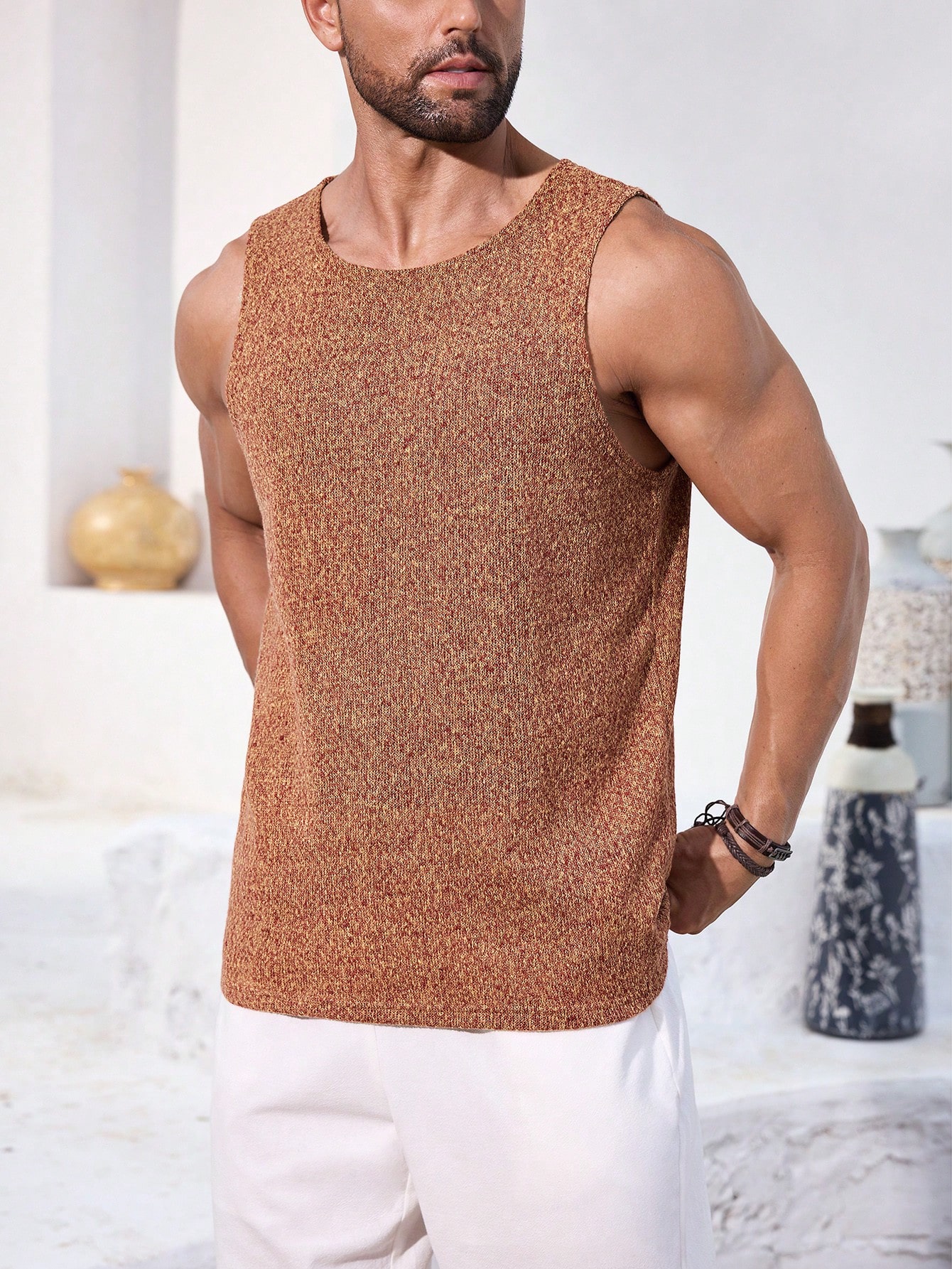 Manfinity KASUA Men??s Orange Knitted Sweater Tank Top, Soft And Comfortable Daily Casual